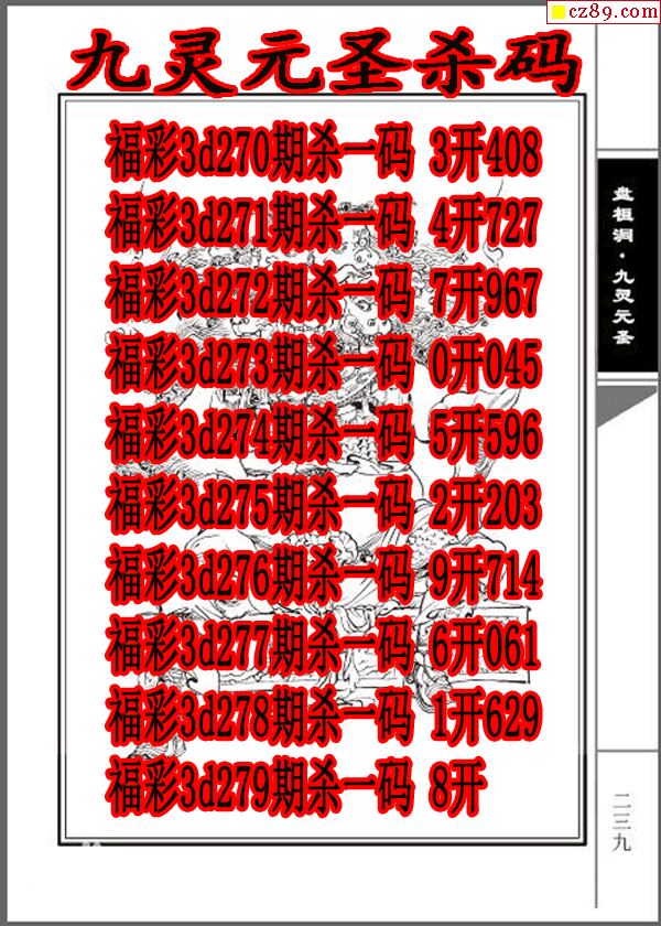 > 九灵元圣杀码2025279期3d图谜(原创)