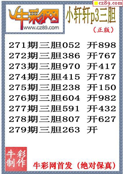 > 小轩轩三胆279期体彩P3图谜(原创)