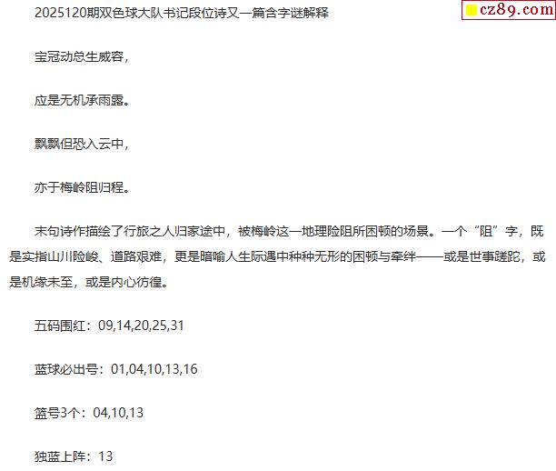 > 25年福彩双色球120期 大队书记段位诗另一篇
